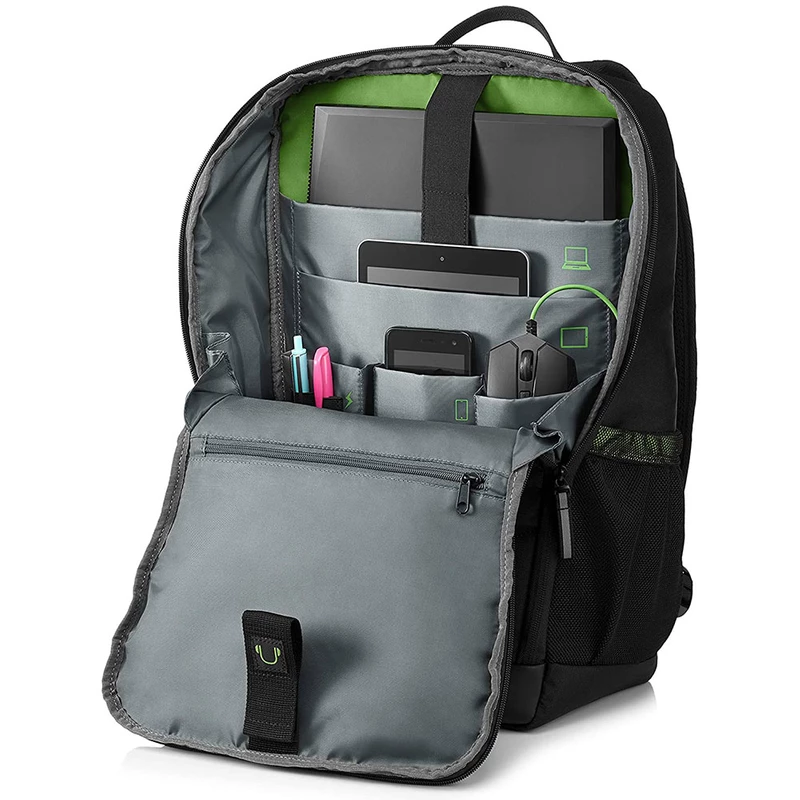 کوله پشتی گیمینگ اچ پی مدل HP PAV-400 این کوله پشتی که فرمی شیک و مدرن برای کسانی که در همه جا و همیشه بازی میکنند طراحی شده . که این کوله پشتی دارای نمای بیرونی مقاوم در برابر اب /مناسب بودن / راحت / و محفظه های جا دار برای تمامی تجهیزات بازی شما مانند (ماوس.هدفن.و…) در کنار محفظه اصلی لپ تاپ دارد .که محفظه زیپی جلو در ان دسترسی به وسایل ضروری مانند تلفن کلید ها و کیف پول را سریع و اسان میکند. یکی دیگر از قابلیت های این کوله پشتی نصب ان بر روی چمدان است.کوله پشتی گیمینگ اچ پی مدل HP PAV-400 دارای دو محفظه توری مانند که در کناره های این کوله پشتی قرار دارد است که مناسب برای قرار دادن بطری اب فلاسک و وسایلی جانبی کوچکی که دارید مناسب است.همچنین این کوله پشتی مناسب برای لپ تاپ های 15.6 اینچی است.قسمت جذاب کوله پشتی گیمینگ اچ پی مدل HP PAV-400 زیپ های انند که به صورت شب نما هستنند.